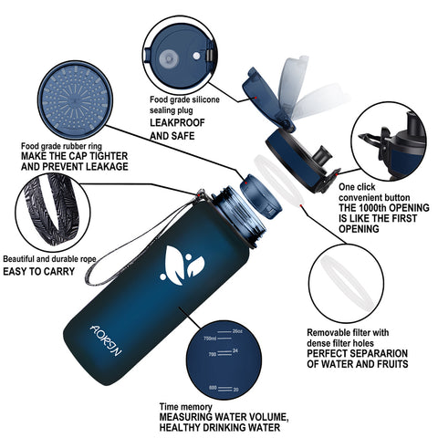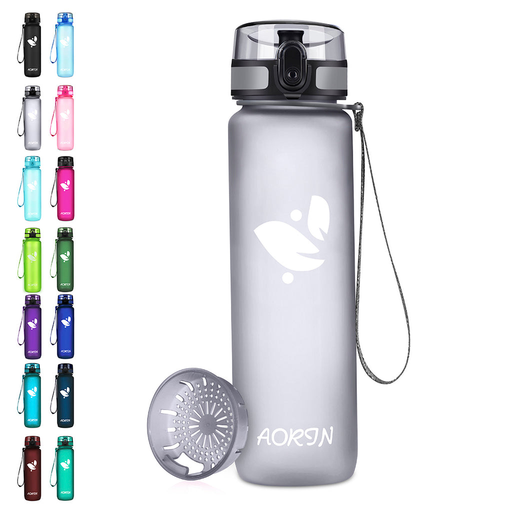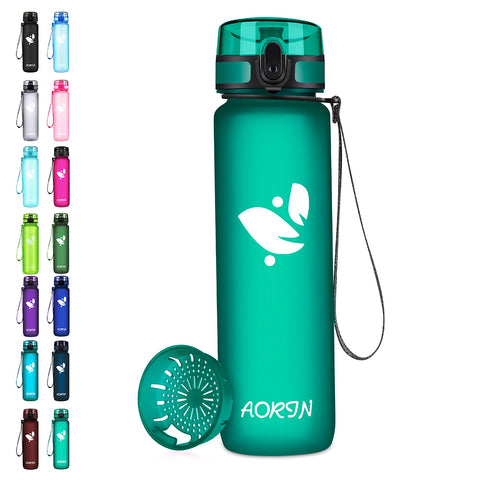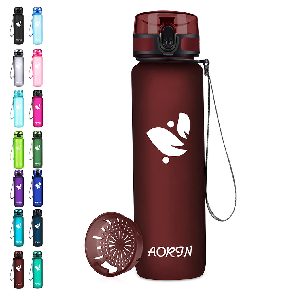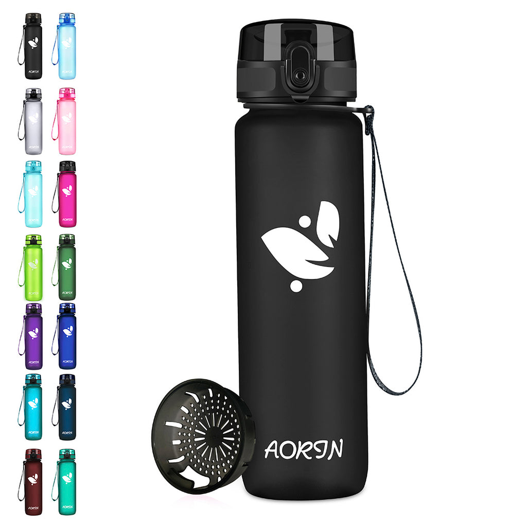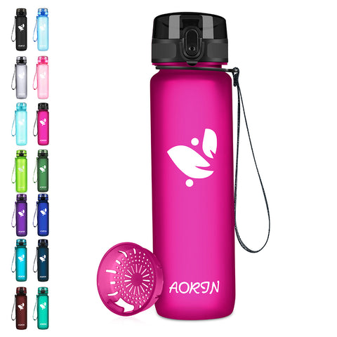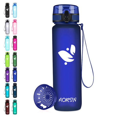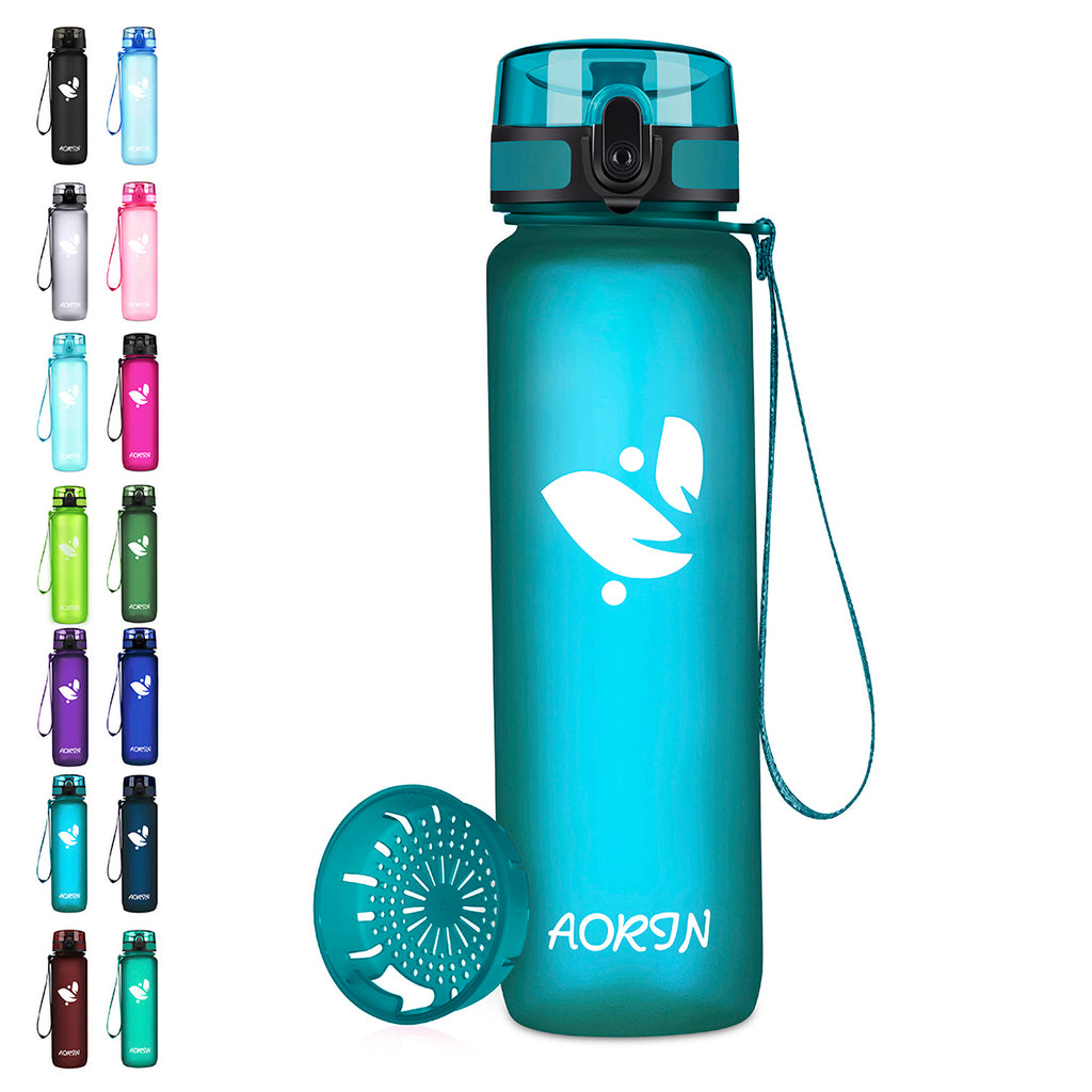 EASY TO USE AND VIEW :One hand push the button & the lid pops open to have a quick drink,(Open with just one click).AORIN drinking bottles comes with a removable filter that comes in and out on the top.And it also has a wide mouth to adding ice cubes and making cleaning that much easier. There are measurement scales on the side, 100ml-1000ml, easy to use.